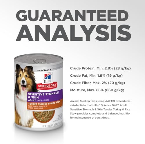 You want your grown dog to feel good inside and out. That’s why Hill’s Science Diet Adult Sensitive Stomach & Skin Tender Turkey & Rice Stew is specially formulated for optimal digestive and skin health. Made with vitamin E and omega-6s to nourish your adult dog’s skin and coat, this easily digestible dog food made with natural ingredients promotes better canine stomach health, as well as easier stool pickup. This mouthwatering, slow-cooked stew for dogs comes in a delicious turkey flavor that will send your pet running for their bowl during mealtime.