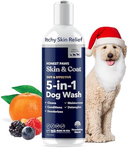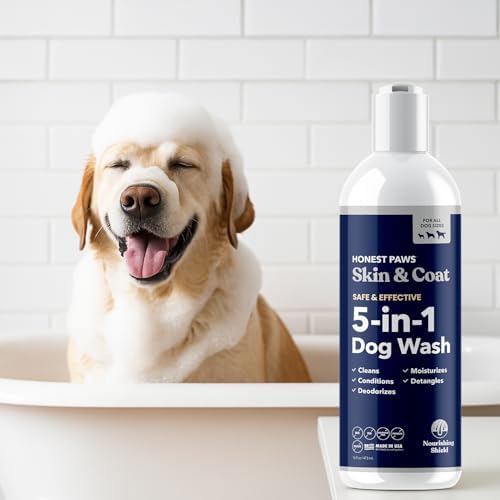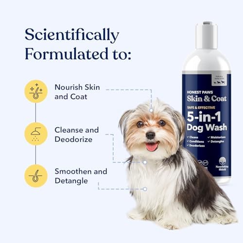 - Five Benefits In One Wash – Cleans, deodorizes, conditions and detangles coat, moisturizes skin– Honest Paws Skin and Coat 5-in-1 Dog Wash is a one-step and easy to use premium dog wash. It is all you need to keep your dog’s fur and skin soft, moisturized and clean.
