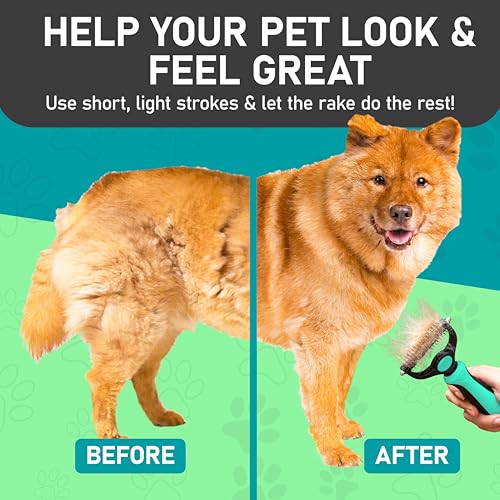| Feature | EFFECTIVE DESHEDDING TOOL & COMFORTABLE TO USE: The perfect cat brush or dog grooming brush solution for pets with thick fur or dense double coats. This grooming rake for dogs is designed with a lightweight, comfortable, non-slip rubber handle to keep the brush from moving around as you groom your pet. |