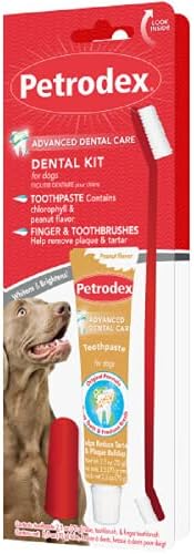 | Item Nype Name | Petrodex Dental Care Kit for Dogs and Puppies, Cleans Teeth and Fights Bad Breath, Reduces Plaque and Tartar Formation, Enzymatic Tooth Brushing Kit, Peanut Flavor, 2.5oz Toothpaste + Toothbrush |
