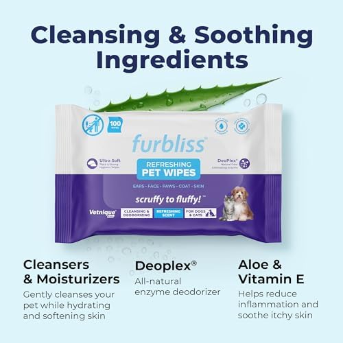 - ULTRA SOFT DOG WIPES – These super soft hypoallergenic wipes, made with the Furbliss formula, which includes key ingredients like Vitamin E, Aloe & Deoplex – a natural enzymatic deodorizer to eliminate pet odor.