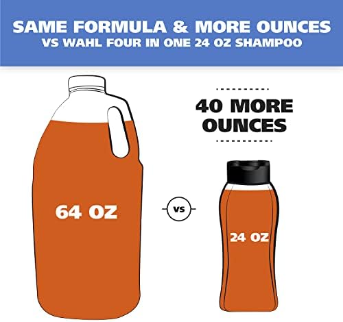 Wahl’s Oatmeal formula shampoo contains coconut lime verbena. This allows us to help gently cleanse, moisturize, & protect your puppy’s delicate skin by providing itch relief. The rich lather helps clean dirty coats and other environmental residue. Since our shampoo is easy to clean, it leaves your dog’s coat looking clean, silky, and smooth. Our plant derived ingredients make our shampoo the choice for owners who want to avoid harsh chemicals for their dog and themselves. Our shampoo is PEG-80 free, alcohol free, paraben free, and pH balanced. Our 64 oz size and concentrated formula allows for up to 70% more baths than other leading brands. While there are no harmful chemicals in our pet products, some pets are sensitive to certain plant oils used in our products. Wahl strongly recommend talking to your vet and doing a small spot test on your pet at least 24 hours before using any new product. Wahl has been serving professional vets and groomers for over 50 years. We are a company of animal lovers that want the best for your family member. Product in packaging may not be exactly the same as photo due to continuous improvements to the product.